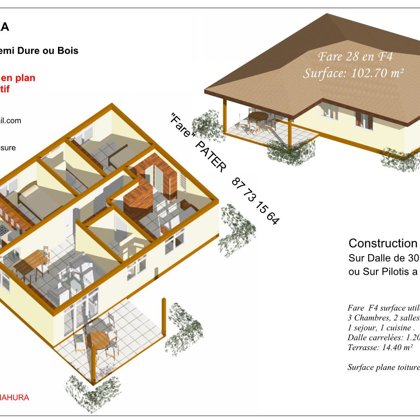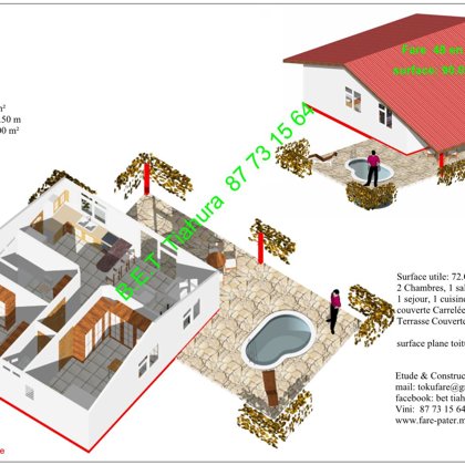 Nota : les modèles des ''Fare'' ci-dessous peuvent être réduits ou agrandis. les Maisons à toiture 4 pentes et plus, peuvent être à 2 pentes.
